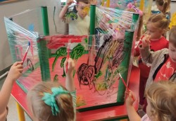 tworzenie kamyczków na wakacyjne podróże oraz bransoletek. Dzieci chętnie